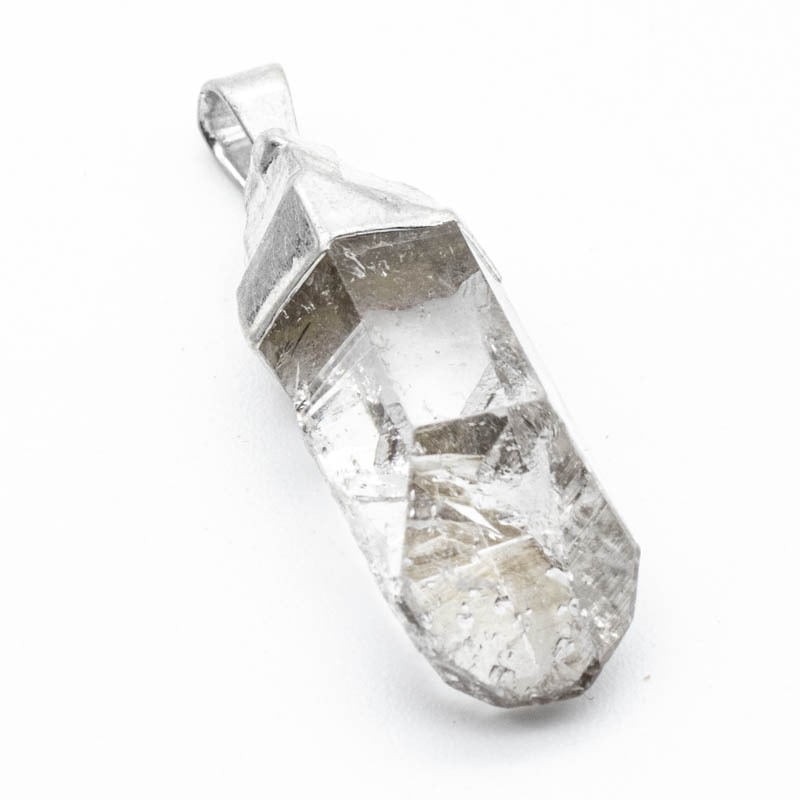 Este colgante de cuarzo blanco en punta bruta conserva su forma natural, resaltando la belleza auténtica del mineral. Su superficie irregular y textura única lo convierten en una pieza especial, perfecta para quienes buscan conectar con la esencia pura de los cristales.