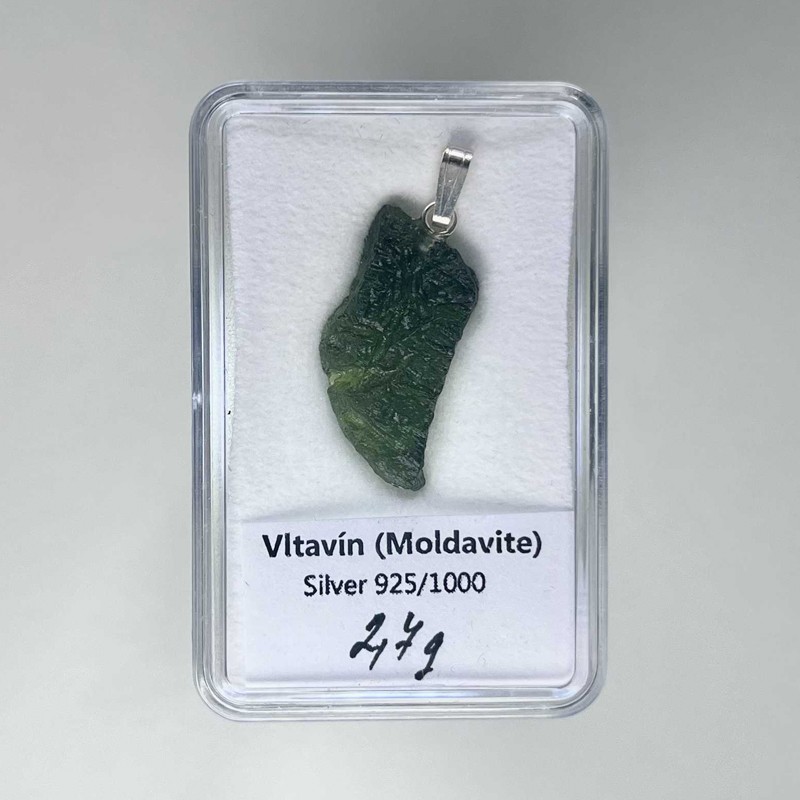 La moldavita se caracteriza por su color verde oscuro translúcido y sus formas naturales. Su origen volcánico le otorga un carácter distintivo y exclusivo.