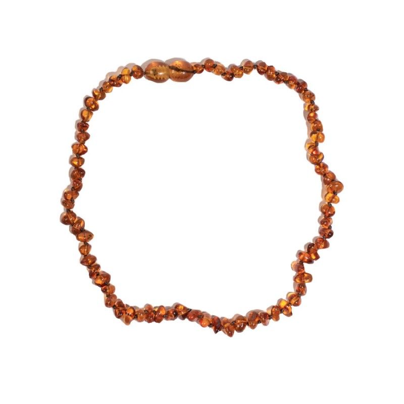 Collar confeccionado con cuentas de Ámbar báltico natural, ligeras y pulidas, pensado para ofrecer suavidad al contacto con la piel del bebé. Su tono cálido y brillante aporta elegancia y bienestar natural.