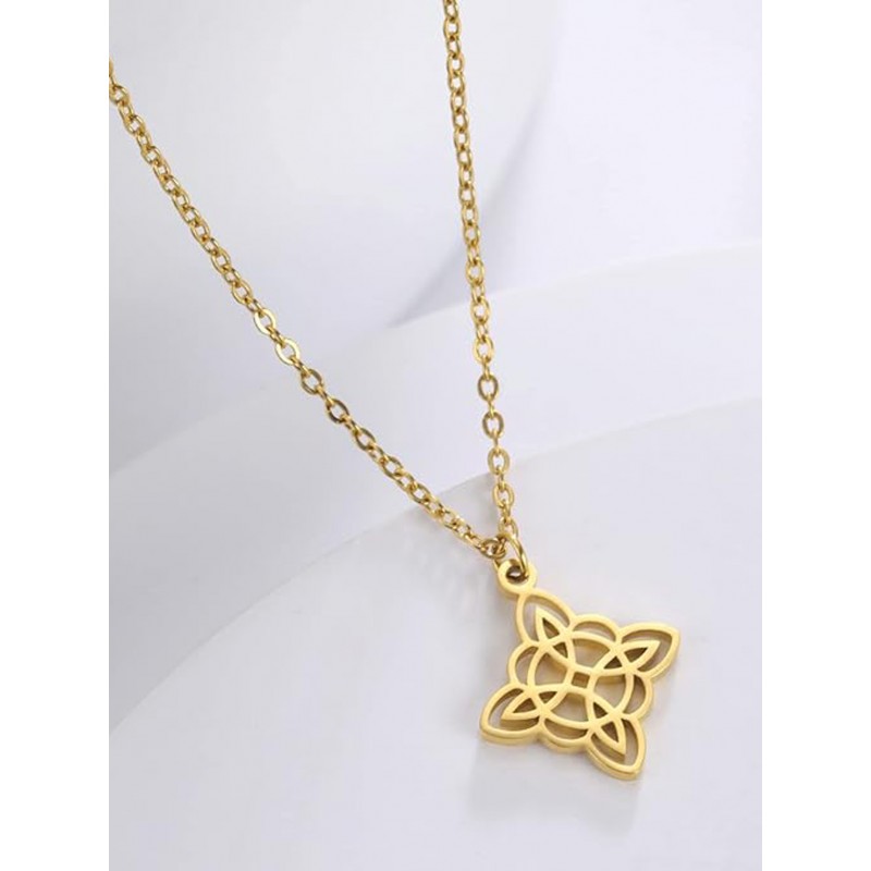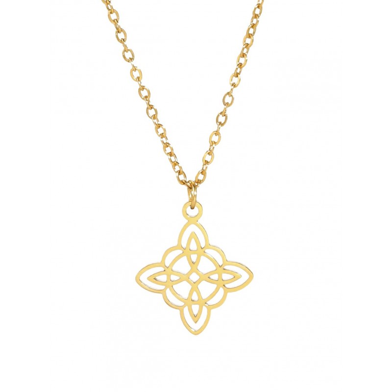 El Colgante Nudo de Brujas Dorado de Acero está fabricado en acero inoxidable de alta calidad, conocido por su durabilidad y resistencia. Este material no solo ofrece una belleza elegante y un acabado dorado brillante, sino que también garantiza que el colgante mantenga su apariencia impecable durante mucho tiempo sin tarnish ni desgaste. La combinación de acero inoxidable con un baño de oro realza su sofisticación y asegura que el colgante sea una pieza duradera y resistente al uso diario.