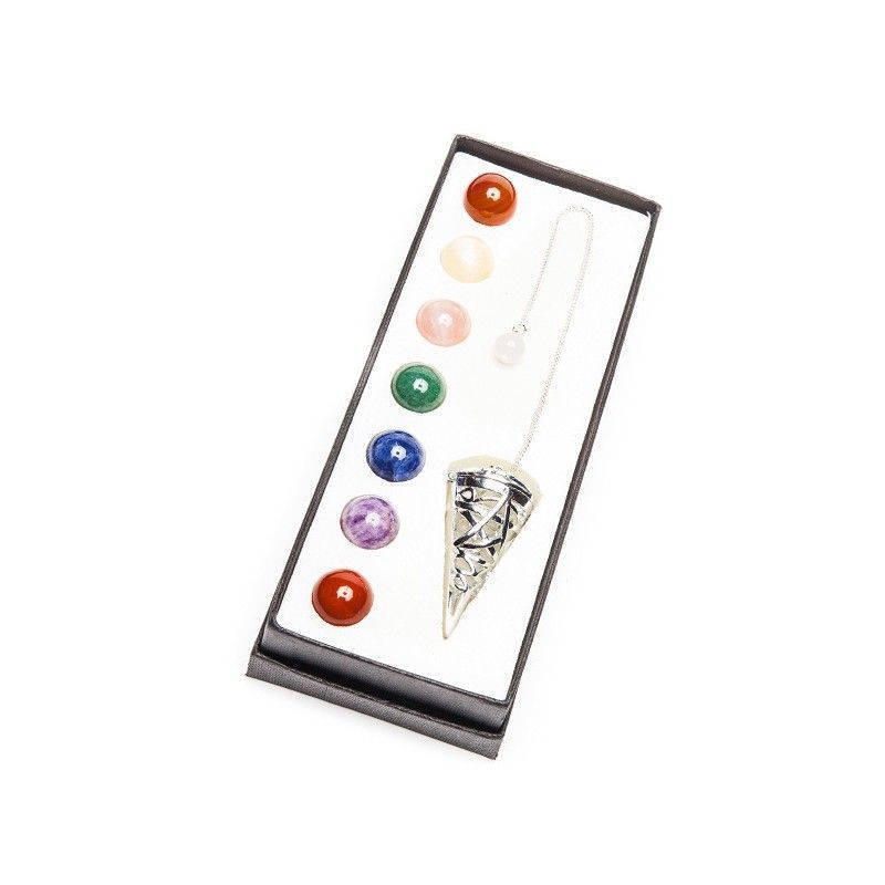 Este set incluye un péndulo elaborado con minerales auténticos, cuidadosamente seleccionados para representar cada uno de los 7 chakras. Las piedras están integradas con precisión, y su forma cónica permite una lectura fluida y precisa. La cadena metálica aporta equilibrio al movimiento y hace que sea cómodo de usar en sesiones energéticas.