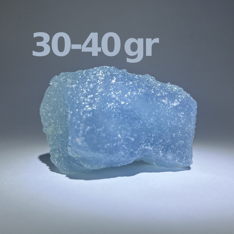 La aguamarina es una piedra preciosa que destaca por sus tonalidades azul verdoso, evocando la serenidad del océano. Su brillo translúcido y su pureza cristalina la convierten en una gema fascinante. Esta pieza en bruto de tamaño mediano conserva su forma natural, manteniendo su esencia auténtica y única.