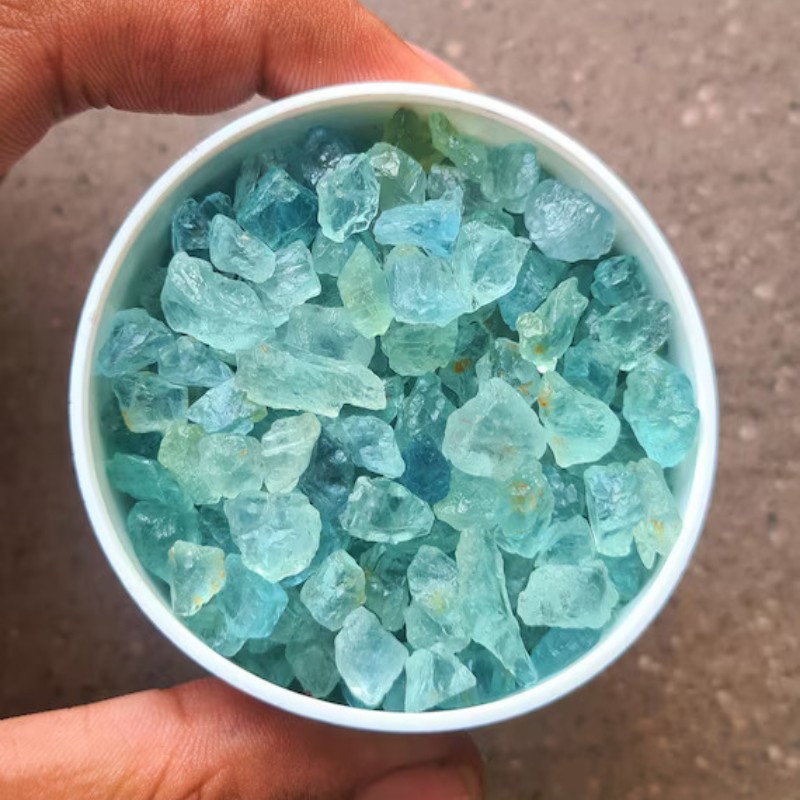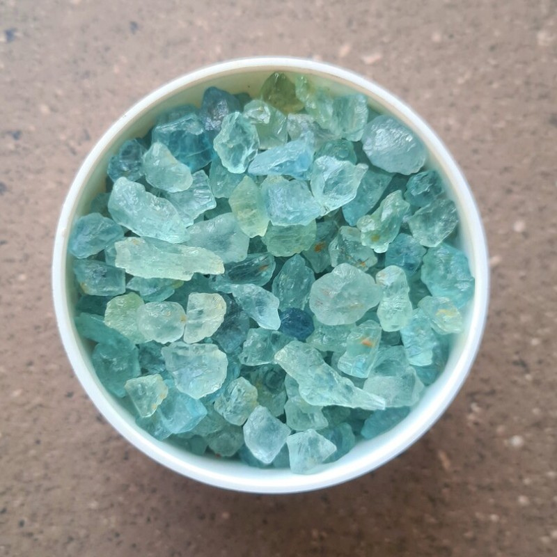 La aguamarina es una piedra de tonos azulados y verdosos que evoca la tranquilidad del mar. En su estado en bruto y en formato mini, mantiene su esencia pura y auténtica. Esta bolsa contiene pequeñas piezas seleccionadas, ideales para quienes buscan conectar con la energía de este cristal.