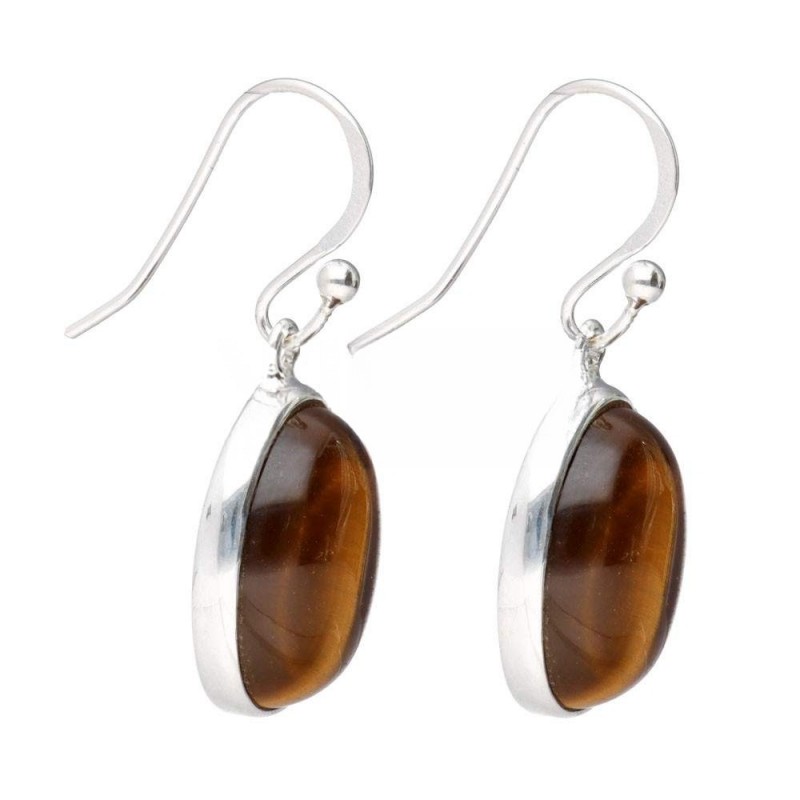 Estos pendientes combinan la belleza cálida del ojo de tigre con el brillo sutil de la plata de ley. Cada piedra ha sido cuidadosamente seleccionada por su intensidad cromática, con reflejos dorados y marrones que capturan la luz en movimiento. La montura de plata aporta un toque sofisticado y moderno, ideal para quienes buscan una joya con fuerza y estilo.