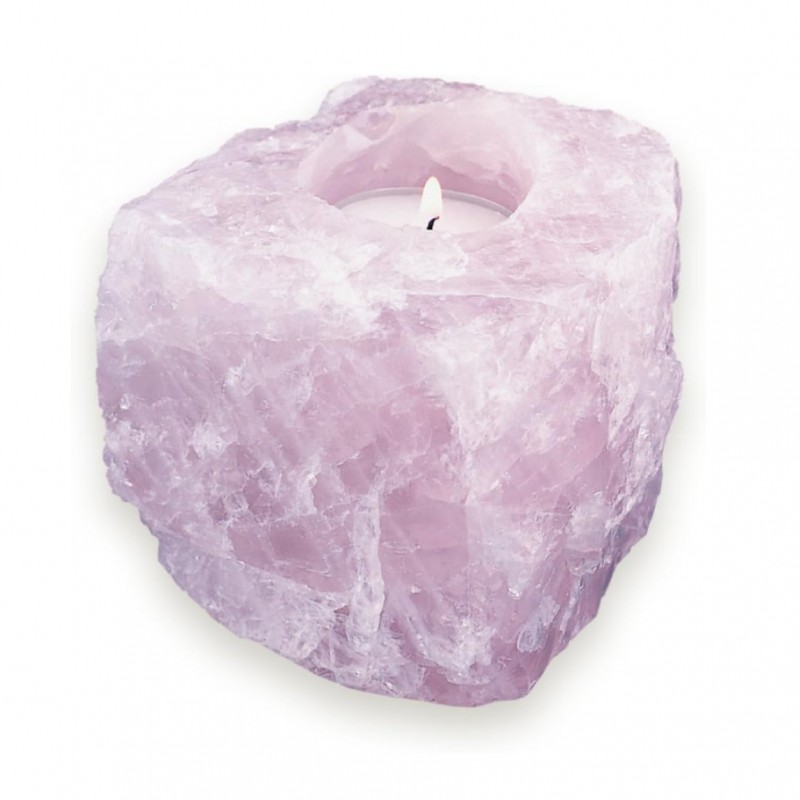 Este portavela de cuarzo rosa presenta una textura cristalina suave con un tono rosado translúcido y un acabado rugoso que irradia serenidad. Tallado en auténtico cuarzo rosa, sus contornos naturales conservan la esencia mineral, aportando belleza y sofisticación a cualquier espacio (escala Mohs: 7).