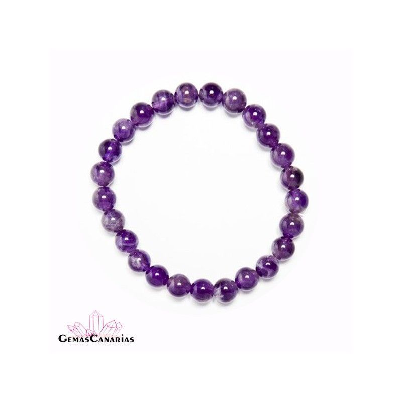 Esta pulsera está fabricada con amatista natural de alta calidad, formada por esferas pulidas de 8 mm. Su tamaño genera una presencia elegante y poderosa en la muñeca, destacando por su tonalidad violeta profunda y su acabado brillante. Cada cuenta refleja la pureza y la fuerza vibracional de la amatista auténtica.