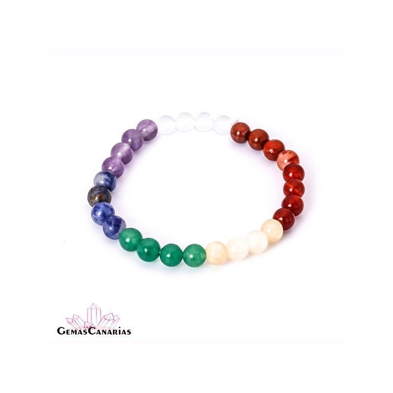 Cada piedra de la pulsera está alineada con un chakra, ayudando a desbloquear energías y favorecer el bienestar emocional y físico. Ideal para quienes buscan armonía, vitalidad y conexión espiritual en su día a día.