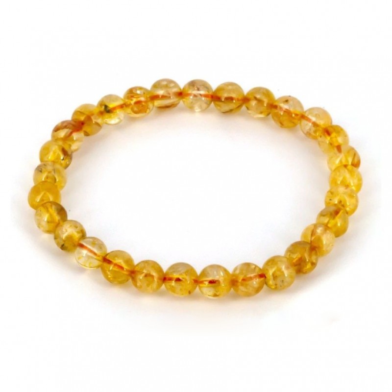 Esta pulsera está confeccionada con esferas de Citrino natural de 6 mm, pulidas cuidadosamente para resaltar su característico tono amarillo dorado con matices cálidos y luminosos. Su tamaño intermedio la convierte en una pieza cómoda y elegante, ideal para lucir a diario y disfrutar de su energía revitalizante y positiva.