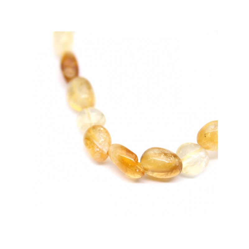 El citrino es conocido como la "piedra de la prosperidad" y está asociado con el éxito, la abundancia y la claridad mental. Esta pulsera de citrino promueve una actitud positiva, aumentando la confianza en uno mismo y fomentando la creatividad. Además, se cree que el citrino equilibra el chakra del plexo solar, el centro energético relacionado con la fuerza de voluntad y la manifestación de deseos. Usar esta pulsera puede ayudar a disipar la negatividad y atraer la alegría, facilitando una vida más plena y consciente.