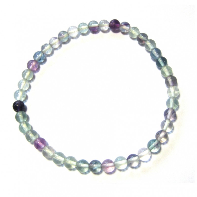 Pulsera confeccionada con cuentas de fluorita natural de 4 mm, cuidadosamente pulidas para resaltar su mezcla única de verdes, lilas y transparencias. Cada esfera muestra un brillo sutil y elegante, transmitiendo pureza y frescura.